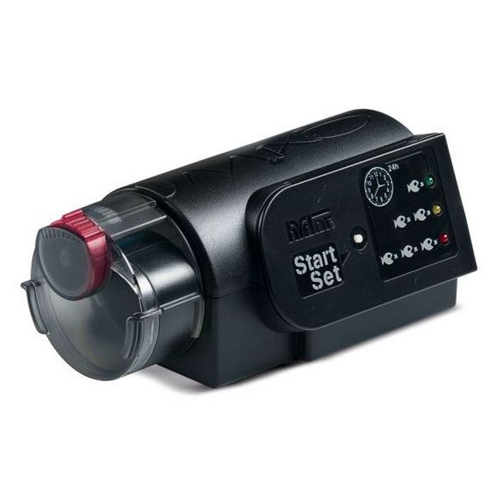 Distributeur automatique de nourriture pour poissons. Fonctionne à piles. Compartiment à nourriture extractible, facile à nettoyer, grande capacité (environ 90 ml) avec dosage réglable sur 10 positions. Système de mélange à vibration pour éviter la formation de grumeaux.